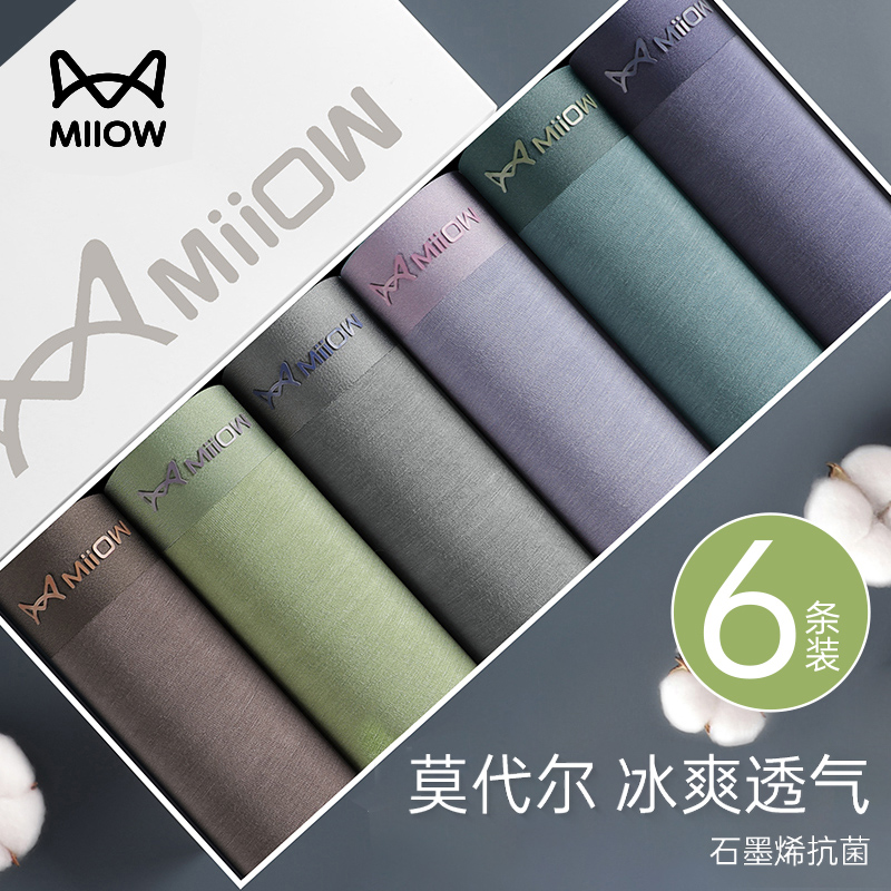 【产品名称:猫人莫代尔男士内裤男生纯棉100%全棉裆四角裤透气平角短裤衩男款】