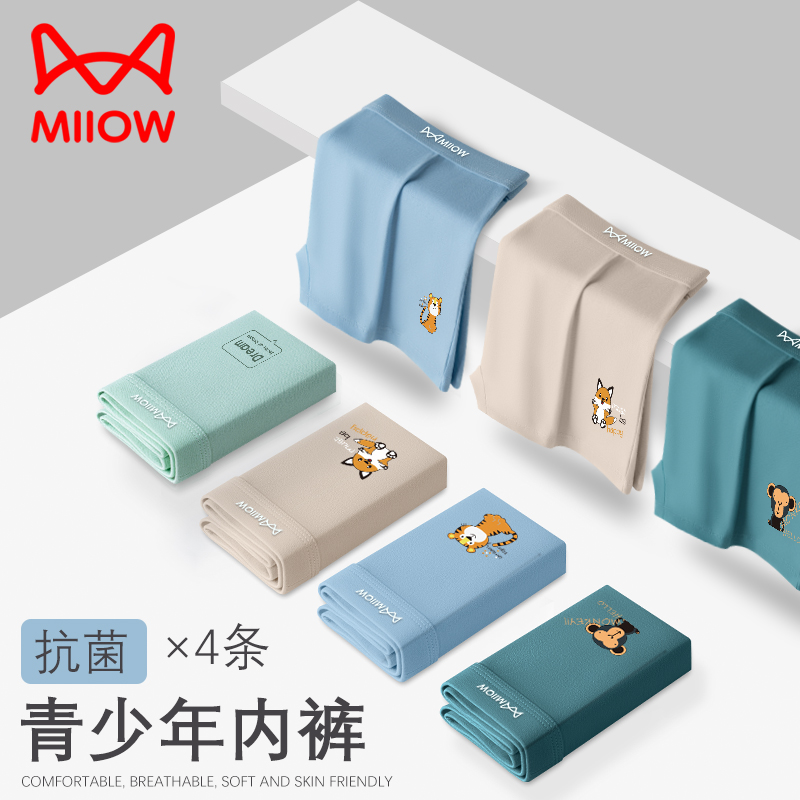 【产品名称:MiiOW/猫人大童青少年男士内裤男孩发育期学生纯棉抗菌裆四角裤头】