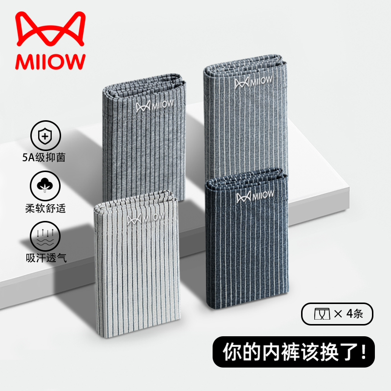 【产品名称:MiiOW/猫人男士内裤男生纯棉条纹运动平角裤5A抗菌档四角短裤衩头】