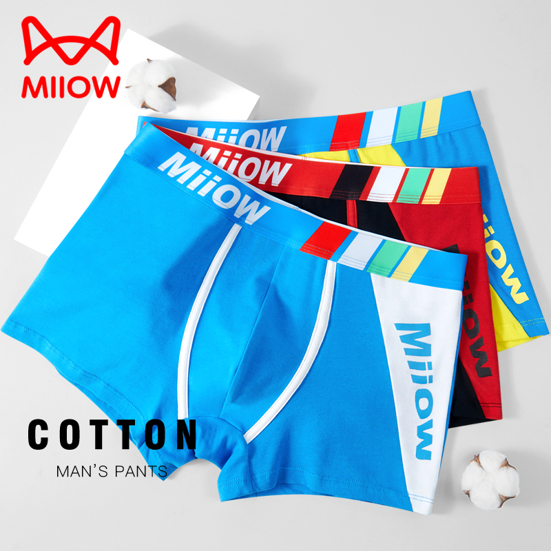 【产品名称:MiiOW/猫人男士棉制内裤抗菌舒适潮流透气运动青春男生平角短裤头】