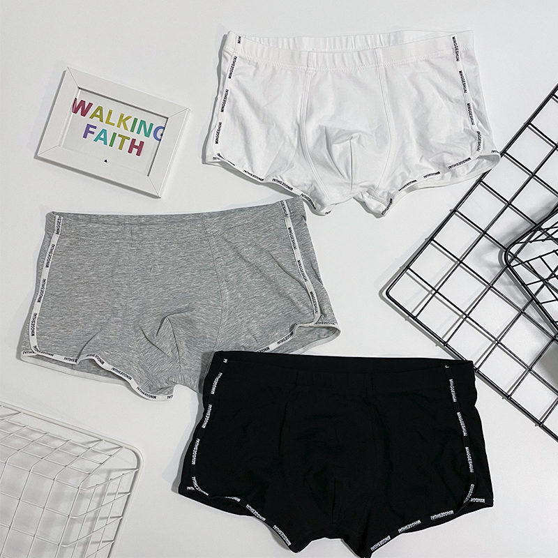 【产品名称:行走信仰全棉男内裤低腰提臀纯色简约平角内裤青年透气学生四角裤】