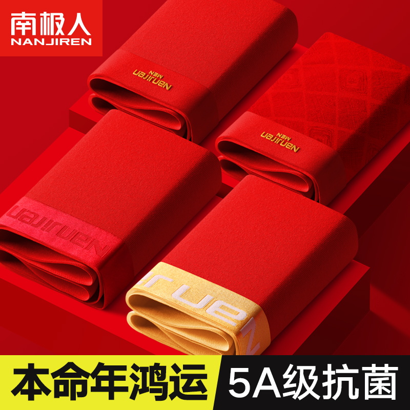 【产品名称:南极人本命年大红色男士内裤男生纯棉四角平角短裤属龙年结婚礼物】