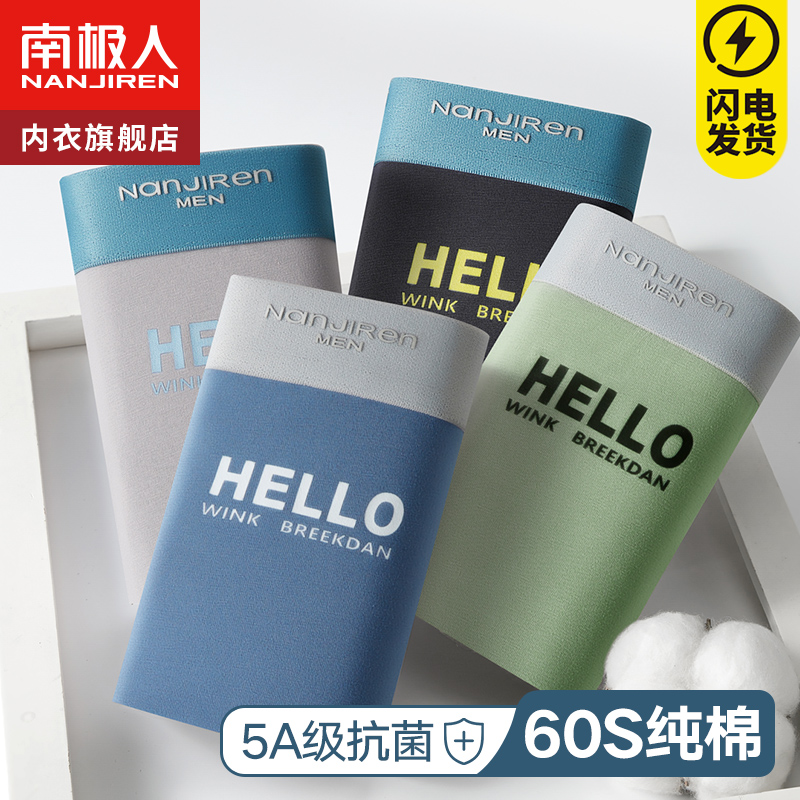 【产品名称:南极人男士内裤纯棉款四角裤头男生平角短裤衩青少年大码100%全棉】