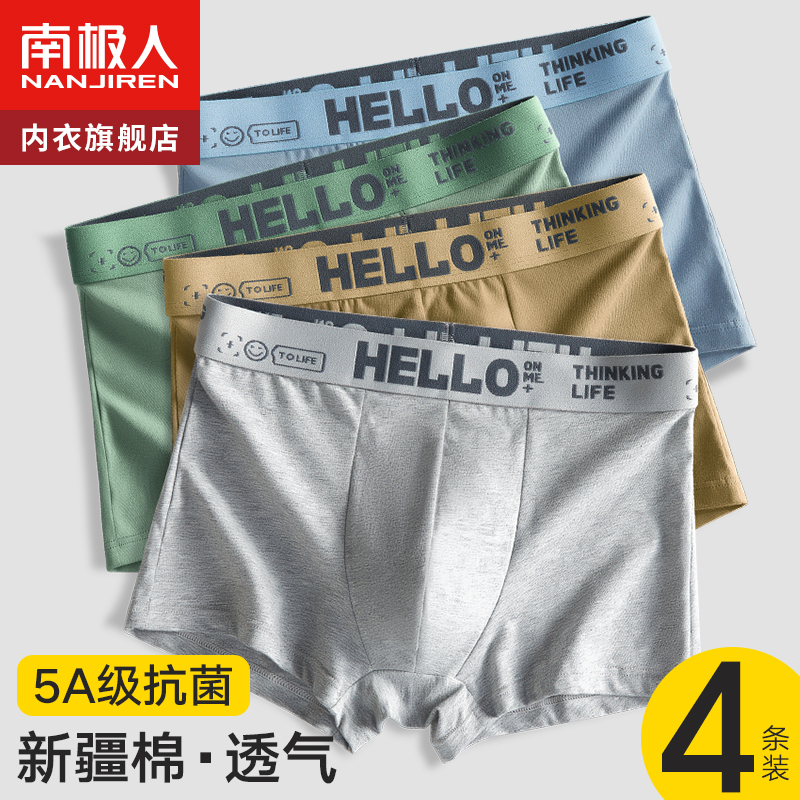 【产品名称:南极人男士内裤纯棉四角短裤男生平角裤头100%全棉青少年夏季薄款】