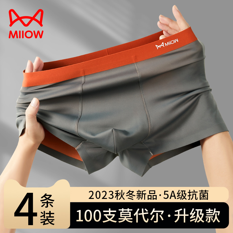 【产品名称:猫人男士内裤男100支莫代尔无痕抗菌档双面四角裤男生纯棉短裤头】