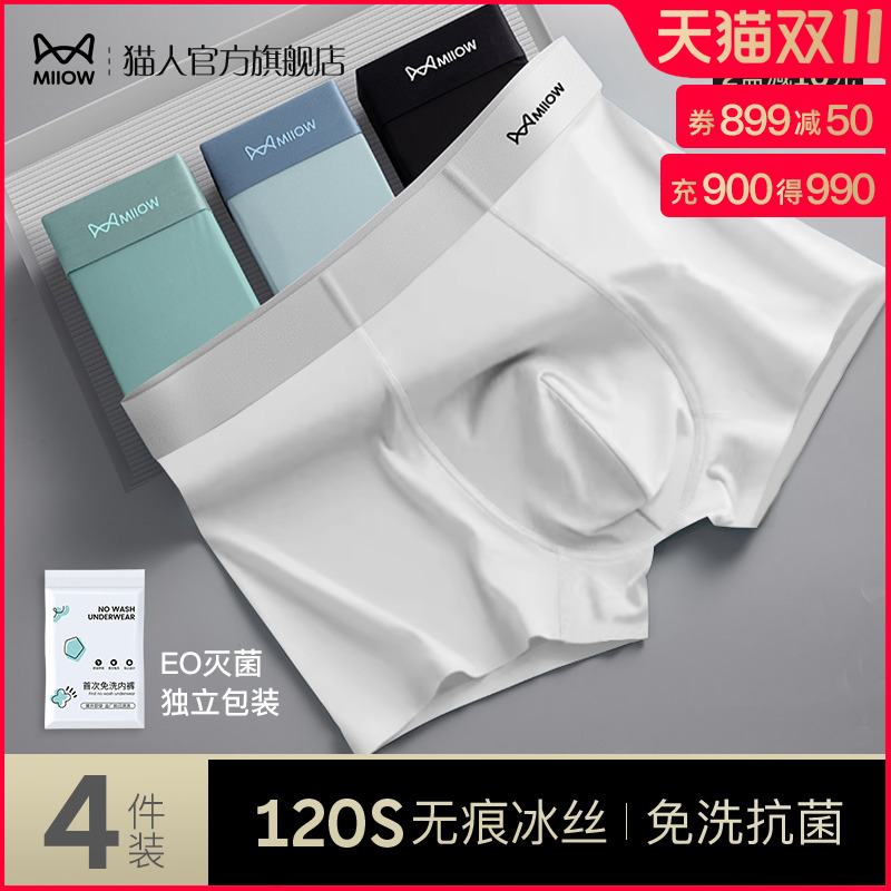 【产品名称:猫人冰丝男士内裤2023新款男生夏季薄款无痕透气大码四角平角短裤】