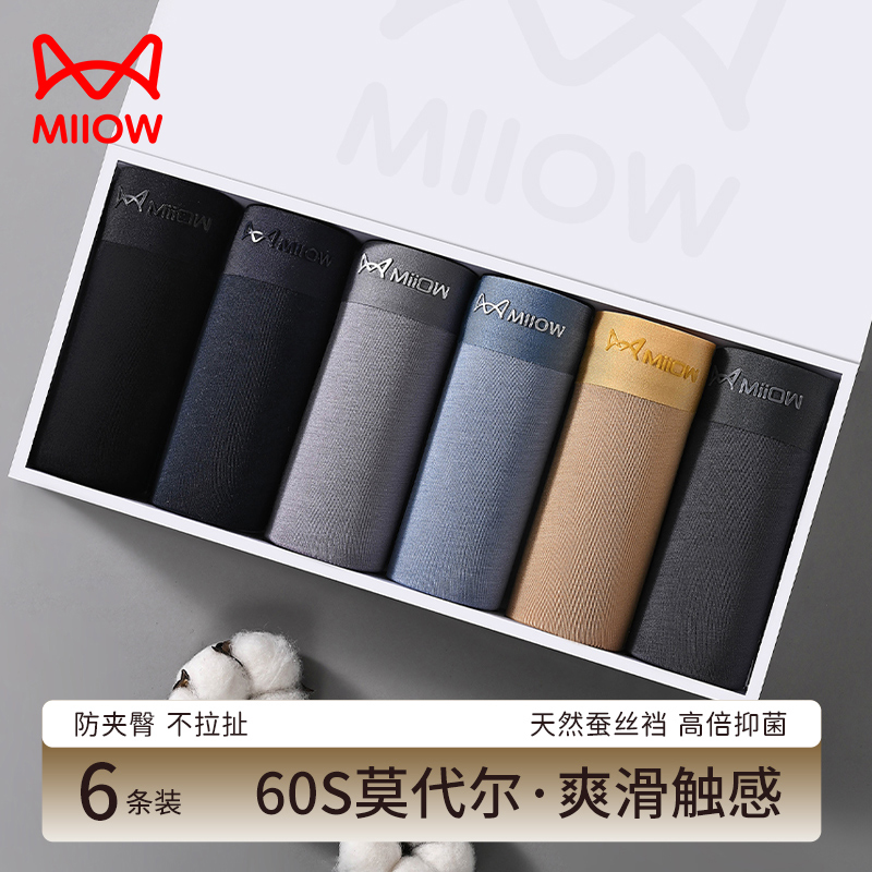 【产品名称:猫人男士内裤男生平角裤莫代尔薄款透气无痕桑蚕丝裆四角短裤春秋】