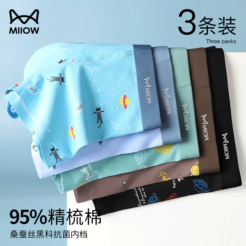【产品名称:猫人内裤男纯棉款男士抗菌四角裤衩运动舒适青年宽松大码平角短裤】