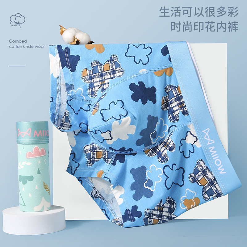 【产品名称:猫人纯棉男士内裤抗菌裆无痕印花内裤男平角裤衩男生短裤头青少年】