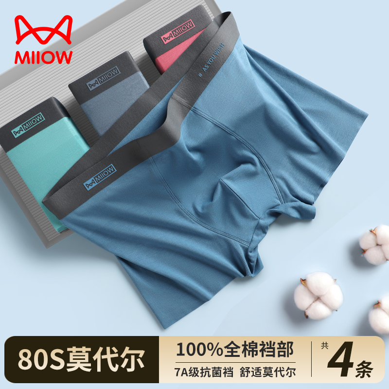 【产品名称:猫人纯棉男士内裤男莫代尔抗菌平角裤透气新款大码四角短裤头男款】