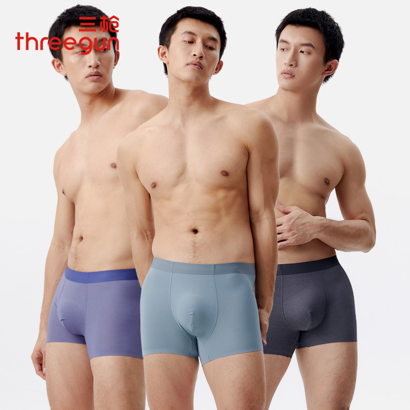 【产品名称:三枪50支莫代尔男士内裤夏季凉感网眼无痕透气平角裤大版型四角裤】