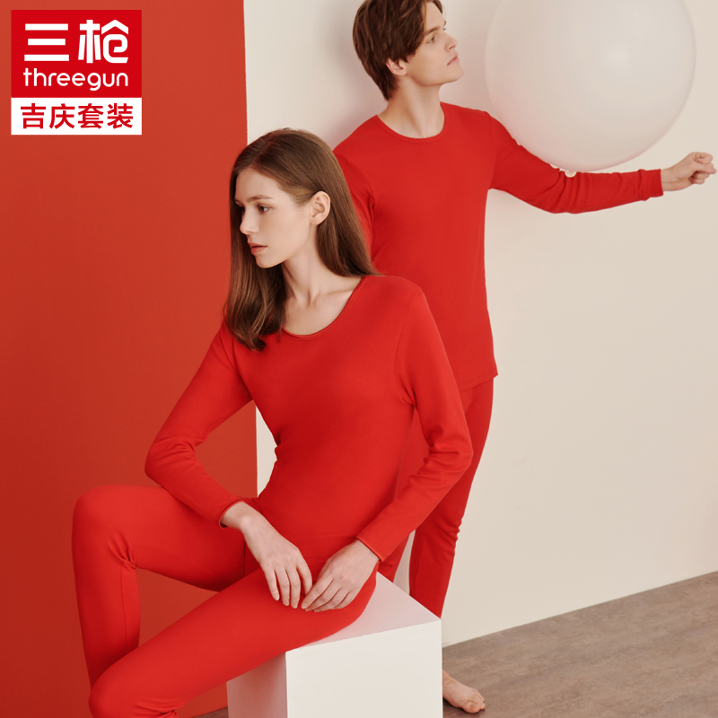 【产品名称:三枪新疆棉男女本命年红色龙年结婚秋衣秋裤纯棉保暖内衣内裤套装】