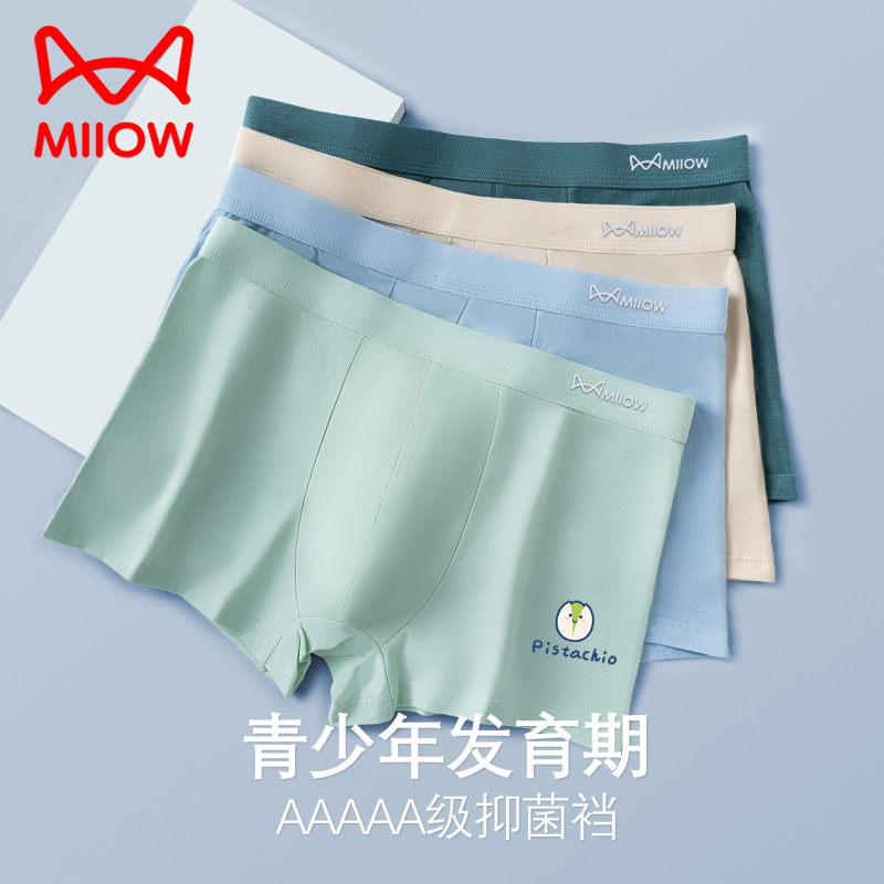 【产品名称:MiiOW/猫人青少年纯棉内裤男学生发育期大童平角初高中生四角裤衩】