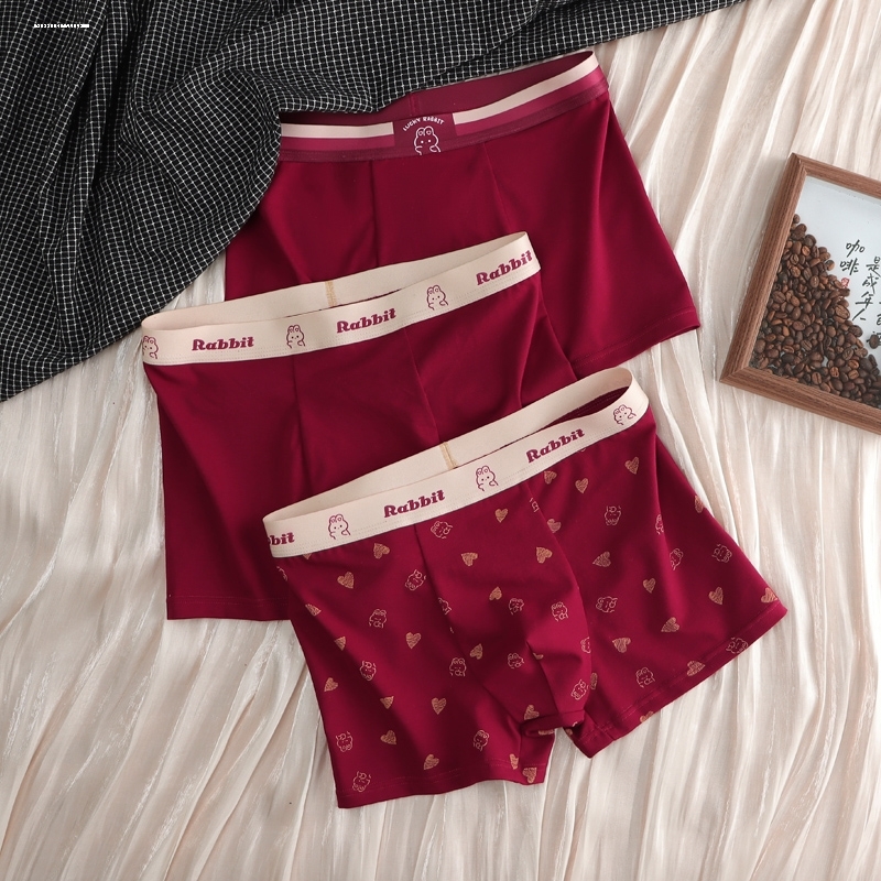 【产品名称:猫人红色内裤男生结婚礼物纯棉男士平角裤属兔本命年四角短裤男款】