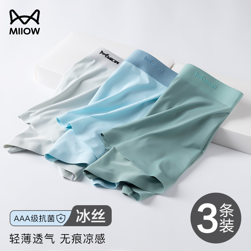 【产品名称:猫人抗菌裆男士内裤男冰丝无痕四角裤运动纯棉裆平角大码裤青少年】