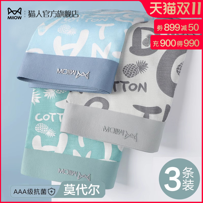 【产品名称:猫人男士内裤纯棉抗菌裆无痕莫代尔印花青少年平角裤衩男生短裤头】