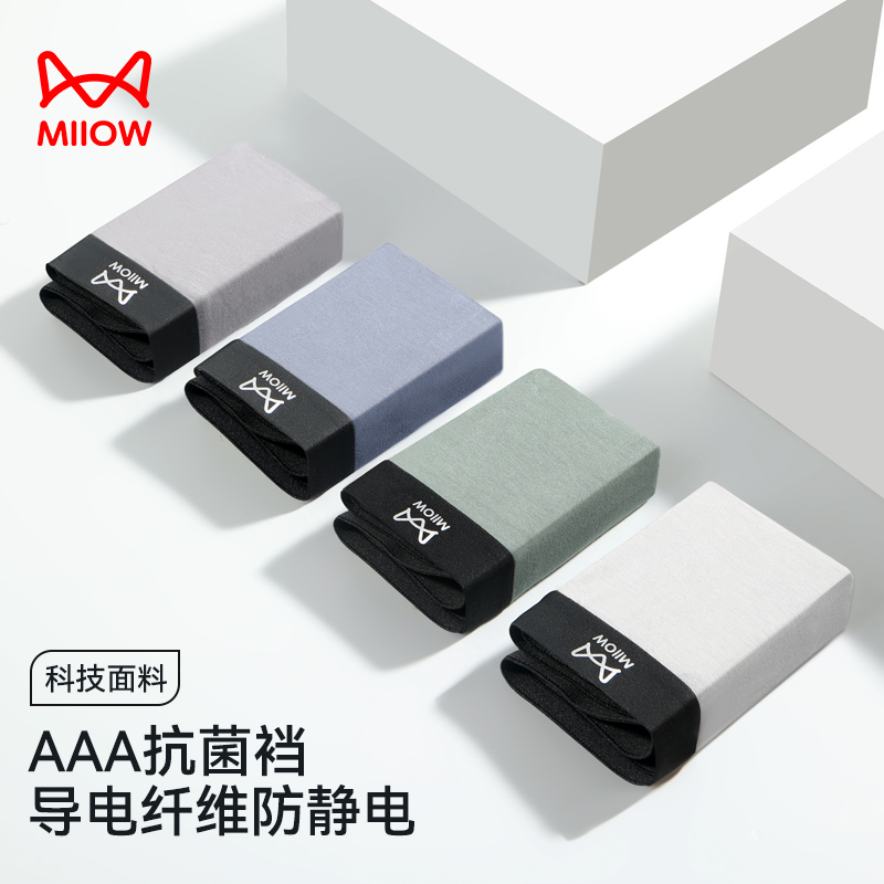 【产品名称:猫人男士内裤透气3A抑菌防静电无束缚男生平角莫代尔触感内裤大码】