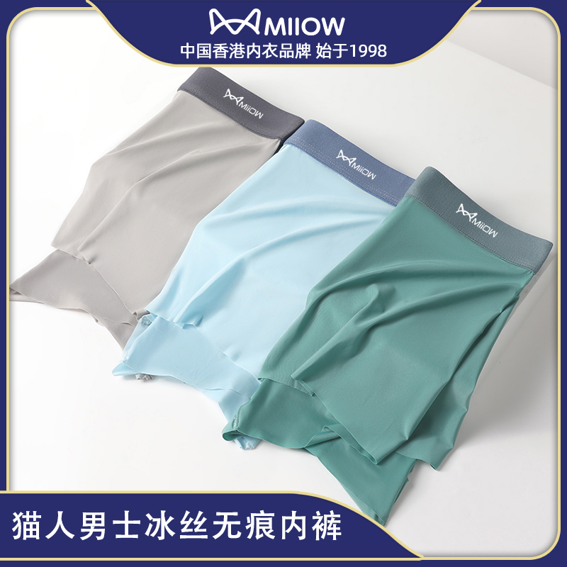【产品名称:猫人男士冰丝内裤抑菌无痕高弹舒适健康亲肤顺滑大码四角裤6条装】