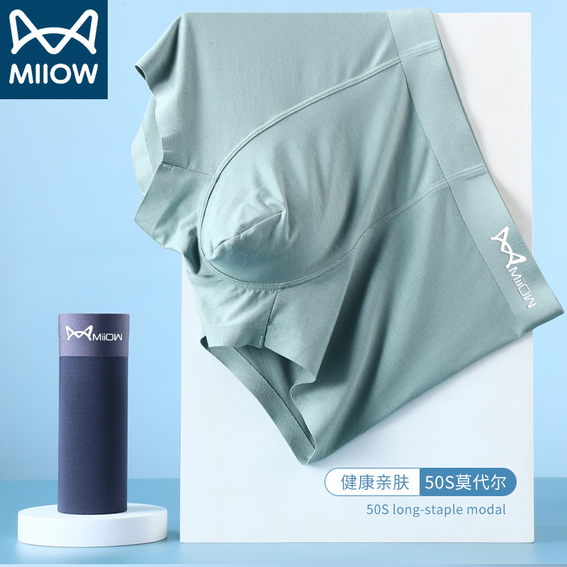 【产品名称:猫人莫代尔内裤男士抗菌四角裤纯棉裆无痕透气薄款新平角短裤夏季】