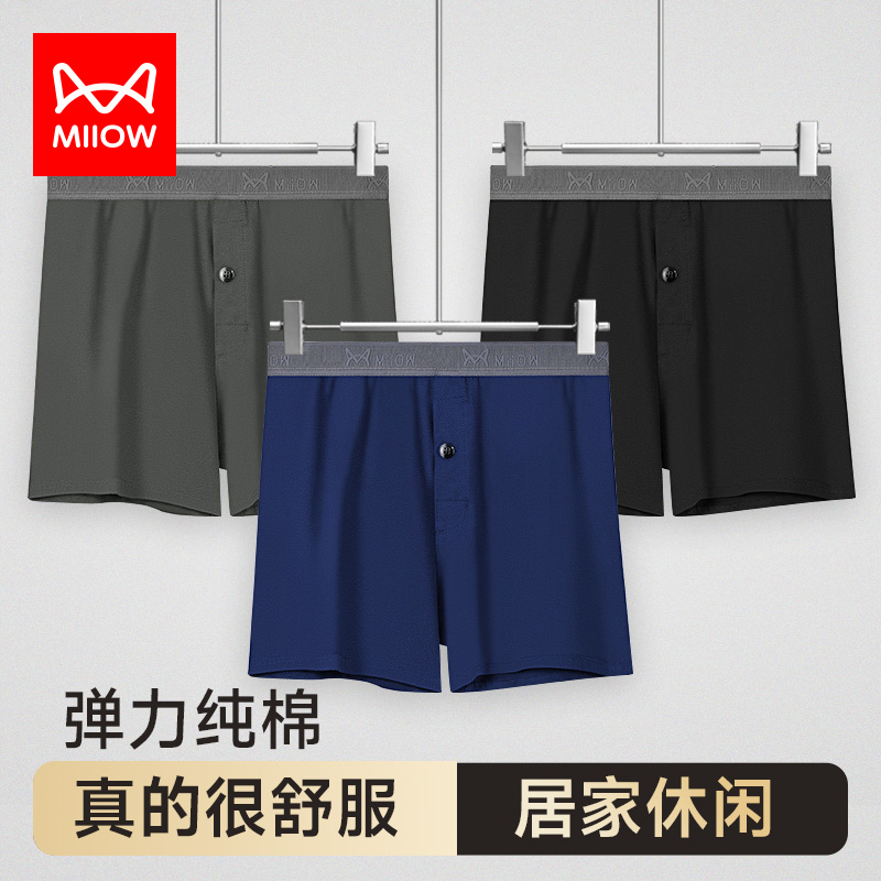 【产品名称:猫人男士内裤阿罗裤纯棉平角裤宽松睡裤短裤夏季透气居家四角裤衩】