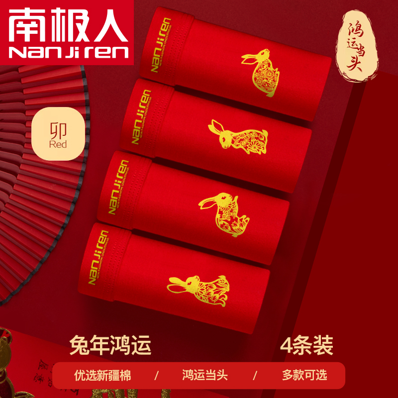 【产品名称:南极人本命年男士内裤男平角裤棉制抗菌大红属兔年结婚四角短裤头】