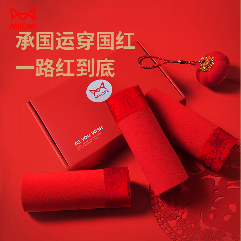 【产品名称:猫人本命年内裤男士红色2023新款结婚四角平角裤短裤透气青年抗菌】