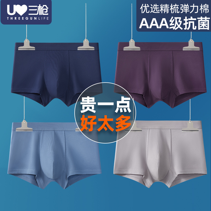 【产品名称:三枪四角内裤男春夏抗菌纯棉中腰男生平角裤大码裤头运动青年短裤】