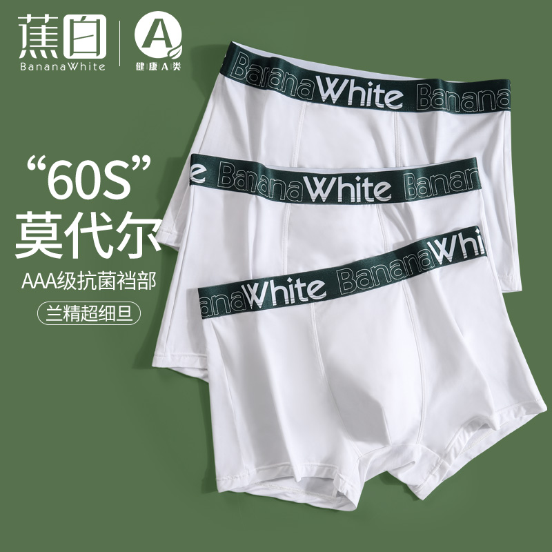 【产品名称:白色男士内裤莫代尔薄款潮男平角短裤全棉裆透气大码运动四角裤头】