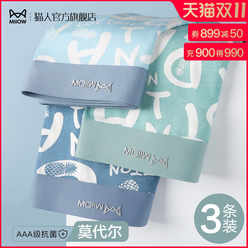 【产品名称:猫人男士内裤纯棉抗菌裆无痕莫代尔印花平角裤衩男生短裤头青少年】