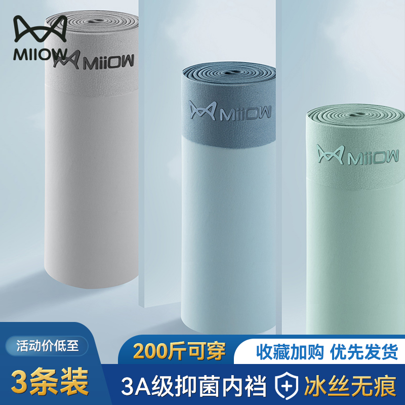 【产品名称:猫人冰丝内裤男夏季薄款透气舒适纯棉抑菌裆男士无痕平角短内裤】