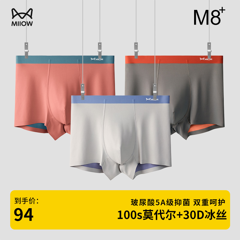 【产品名称:猫人100支莫代尔男士内裤冰丝无痕平角裤男生四角运动内裤短裤衩】