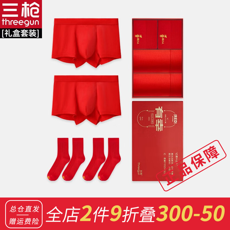 【产品名称:三枪 本命年兔年大红内裤礼盒装 男大红色鸿运吉庆内裤袜子礼盒】
