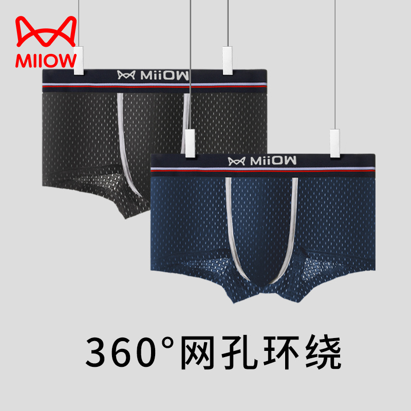 【产品名称:猫人冰丝内裤男网孔四角裤男式夏薄透气U凸平角短裤男生运动底裤】