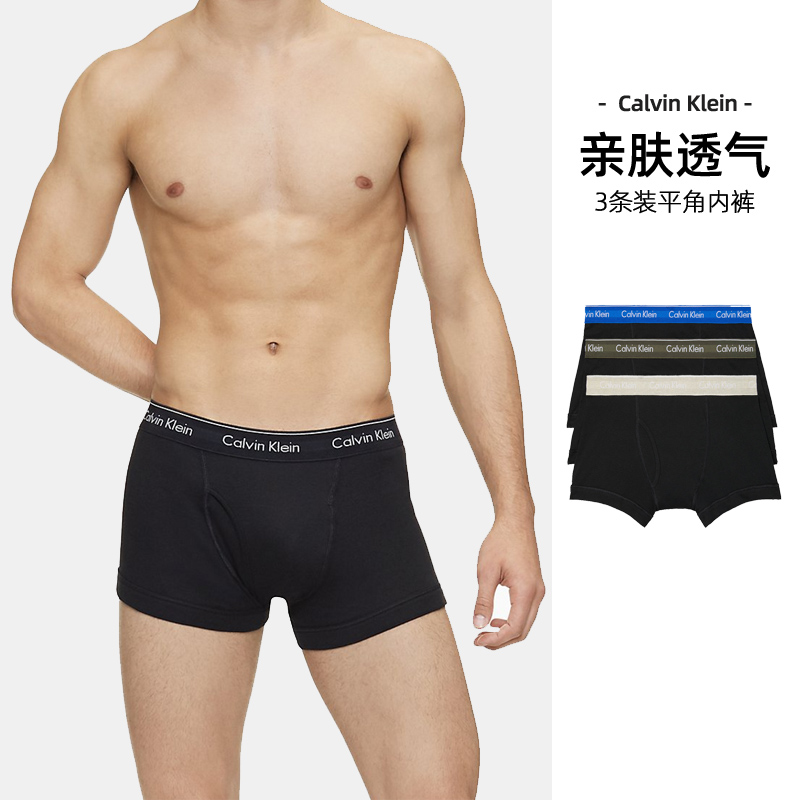 【产品名称:Calvin Klein/凯文克莱CK内裤男士无痕纯棉透气平角底裤3条装集货】
