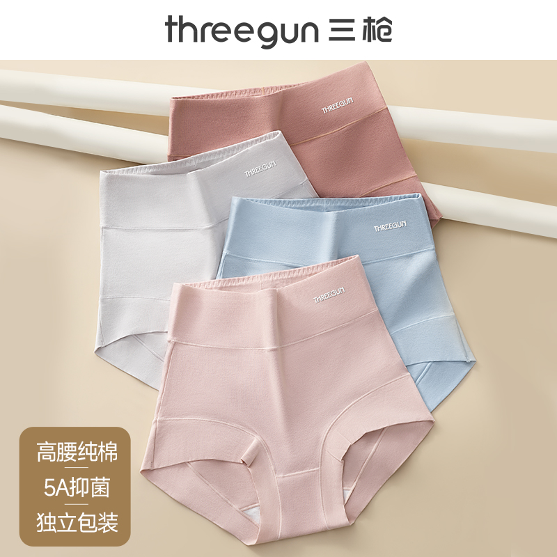 【产品名称:三枪高腰女士纯棉内裤抑菌无痕束腰收腹提臀裤收小肚子透气三角裤】