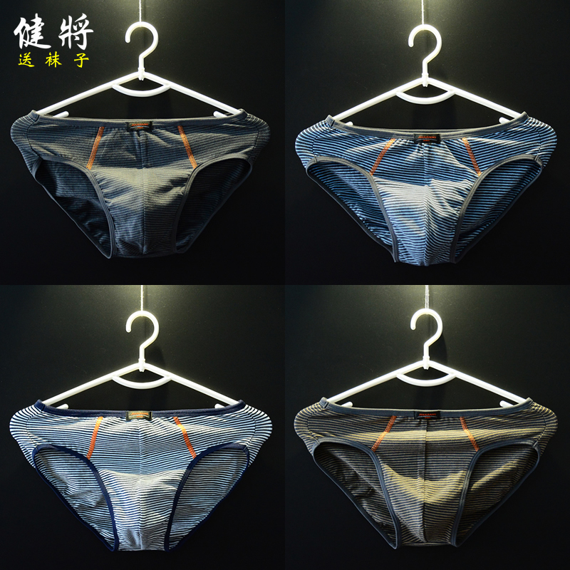【产品名称:健将三角男士内裤细边条纹中腰纯棉透气裤头潮运动弹力棉裤衩全棉】
