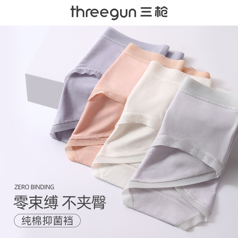 【产品名称:三枪莫代尔冰丝感内裤女士纯棉裆抑菌无痕中腰春夏透气三角短裤头】