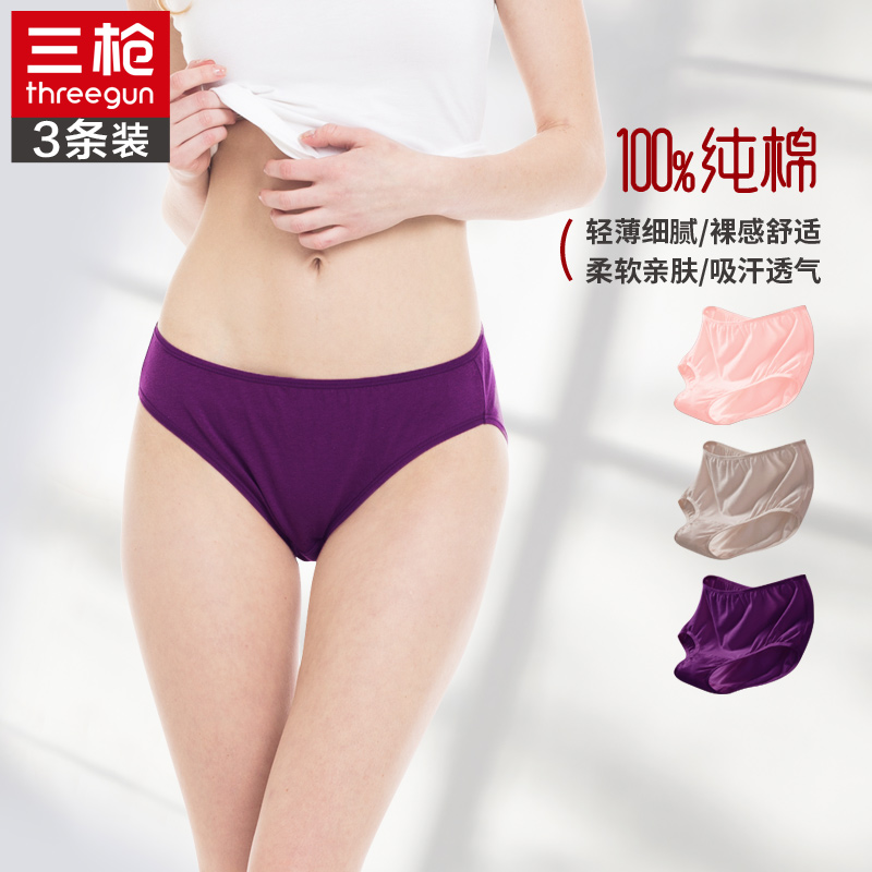 【产品名称:三枪紫色内裤女士纯棉超薄中腰透气全棉薄款舒适无痕中腰三角裤】