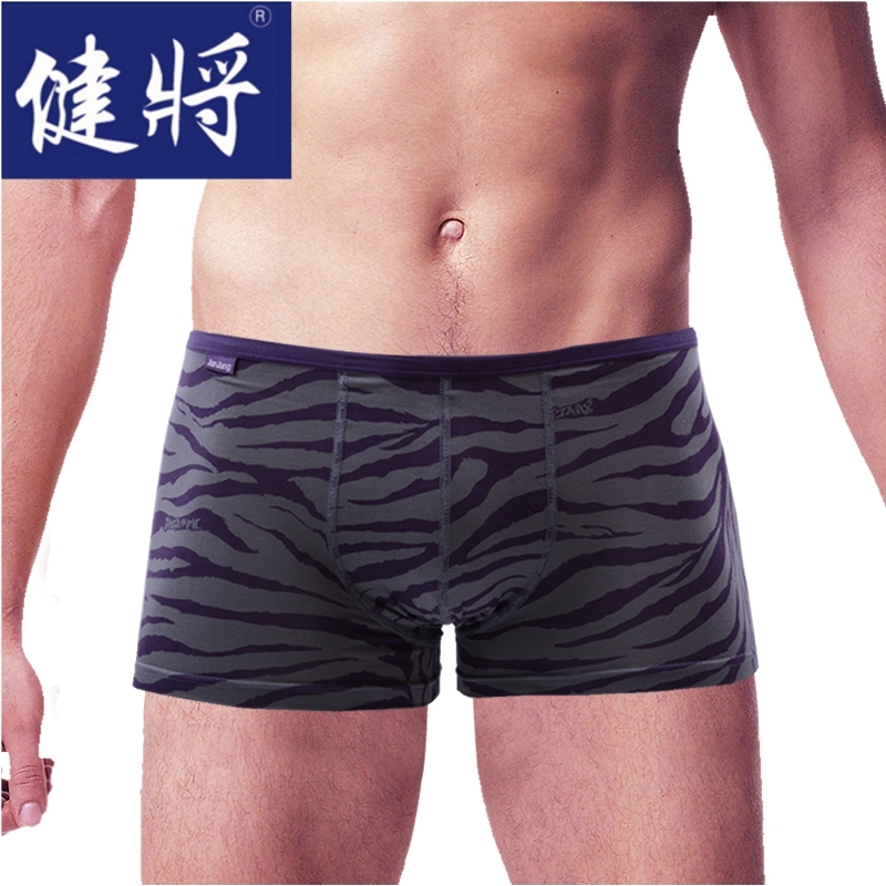 【产品名称:2条健将男士平角内裤竹纤维四角裤细边印花豹纹裤头透气运动短裤】