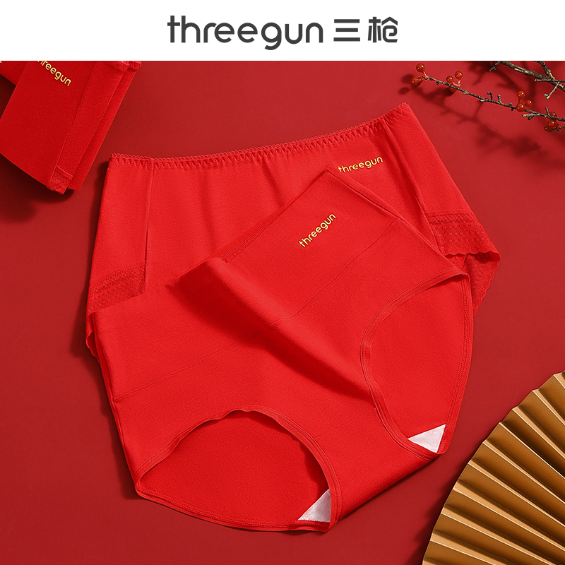【产品名称:三枪红色本命年女士内裤新娘新婚礼物全棉抑菌底裆高腰三角裤秋冬】