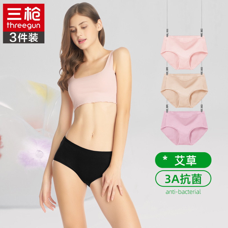 【产品名称:三枪女士夏季艾草抗菌莫代尔三角裤弹力短裤收腹亲肤薄款中腰内裤】