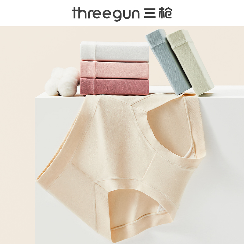 【产品名称:三枪女士内裤女纯棉中高腰透气2023新款抑菌桑蚕丝底裆包臀三角裤】