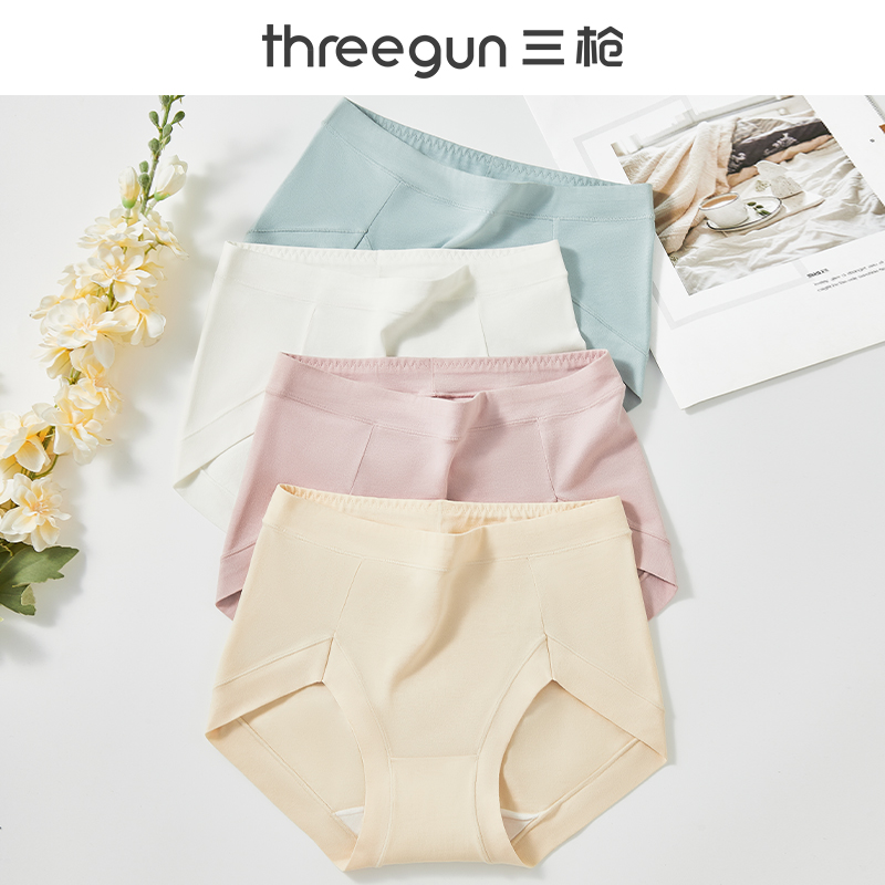 【产品名称:三枪内裤女纯棉高腰抑菌桑蚕丝底裆中高腰透气女士三角短裤头薄款】