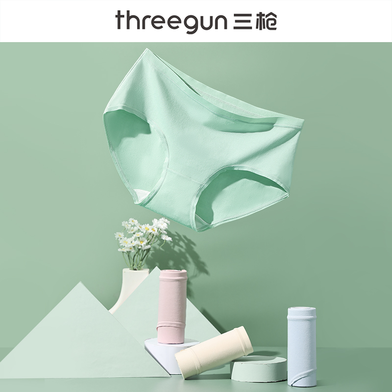 【产品名称:三枪女士内裤女纯棉抑菌桑蚕丝裆底裤薄款中腰透气三角短裤少女生】