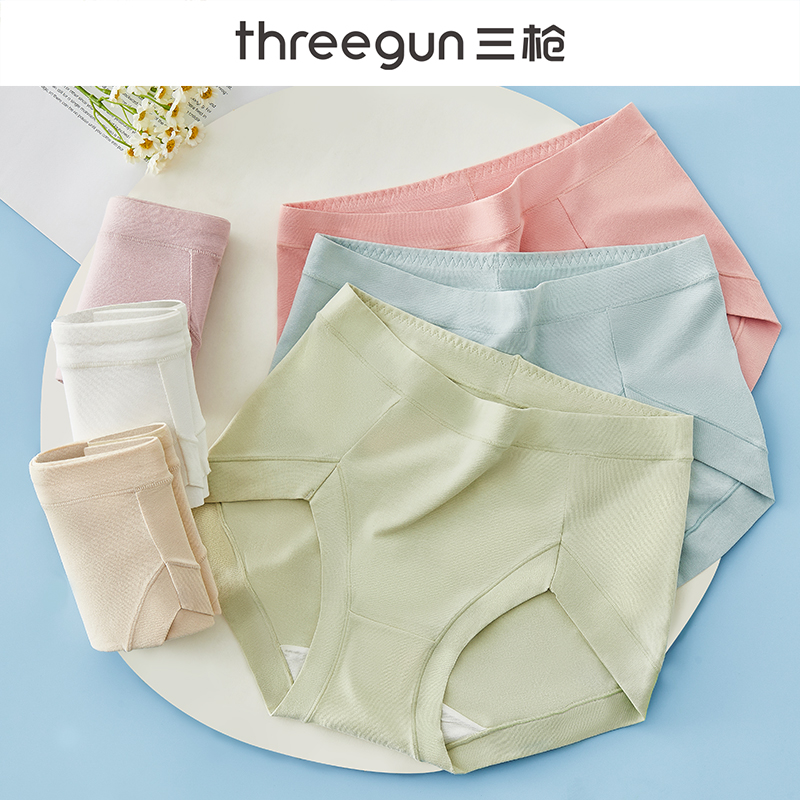 【产品名称:三枪纯棉内裤女士无痕透气秋冬新款蚕丝抑菌裆中高腰收腹三角裤衩】