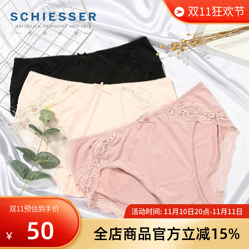 【产品名称:舒雅纯莫代尔内裤女 女士舒适中腰纯色蕾丝三角裤底裤E1-18328S】