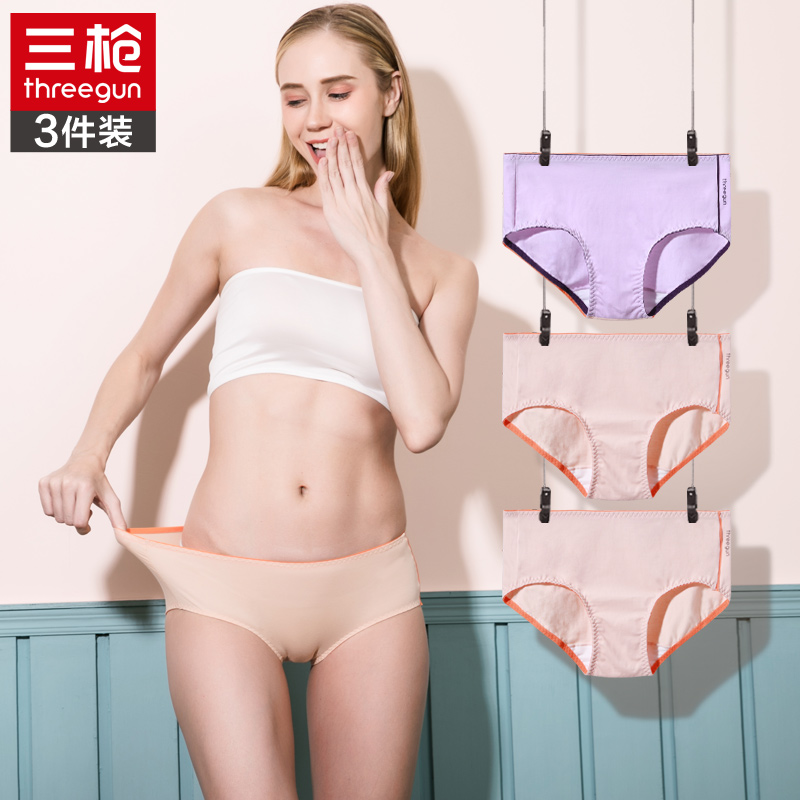 【产品名称:三枪 正品女士中腰透气棉质无痕三角裤少女弹力柔软超薄内裤底裤】