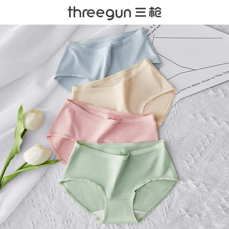 【产品名称:三枪内裤女纯棉中腰抑菌桑蚕丝底裆女士短裤薄款舒适包臀三角裤头】