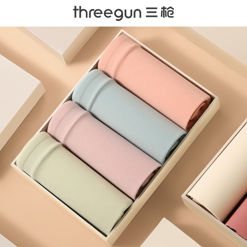 【产品名称:三枪内裤女士纯棉中高腰秋冬季新款桑蚕丝抑菌裆纯色不夹臀短裤头】