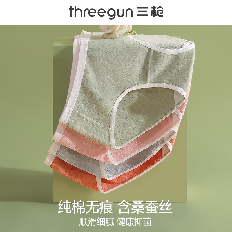 【产品名称:三枪内裤女士纯棉抑菌桑蚕丝裆透气无痕中腰薄款女生三角裤短裤头】